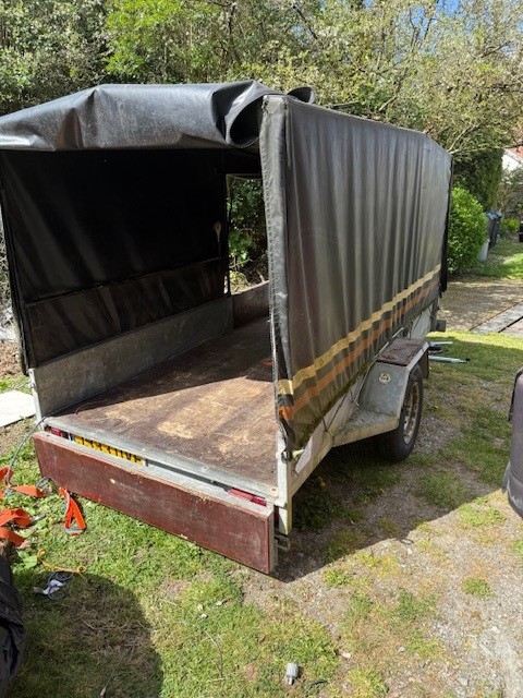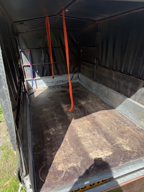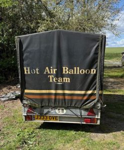 Vintage legendary single axle balloon trailer, pre loved, needs a clean, and a bit of maintenance, but ready to move on to a new family. Lights work fine (new plug fitted last year), tyres sound, one is brand new. Bags of room for flying kit plus camping, removable rail for easy refuelling and sturdy inside metal structure to tie everything on to. PVC cover and zips. New elastic has been fitted in places where needed. 275cm long, 145cm wide. Inside – Top middle rail height 150cm, side top rail height 137cm